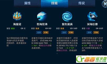 海皇冠:被动:每次释放技能可以提升自己的法术强度,持续5秒,最多叠加3层。
