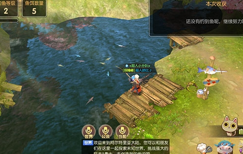再往左边走就是宴席所在地。当满足条件后就可以邀请好友一同享受这宴席大餐。直线前行的话就会到我们钓鱼的地方,钓鱼是可以自动以及手动,可以说是非常人性化的设置。钓上来的鱼将会提示并放置在本次收获中。每天钓鱼还能增长钓鱼等级,钓鱼等级越高每次钓上来鱼的几率也就越大哦。家园商店是可以购买鱼饵数量,土豪们不妨一次多购置鱼饵,将号挂机自己垂钓。