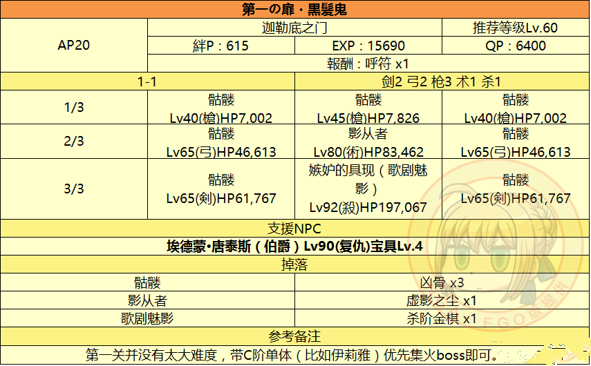 由于大部分关卡支援只能使用系统给的伯爵,所以推荐在敌人为非ruler的场合,把这张卡丢在最后一位,全程使用自己的卡进行攻略。由于伯爵没礼装,又不能克制,先发容易拖后腿,请注意。