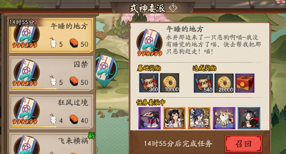式神委派午睡的地方式神推荐:犬神、九命猫、赤舌