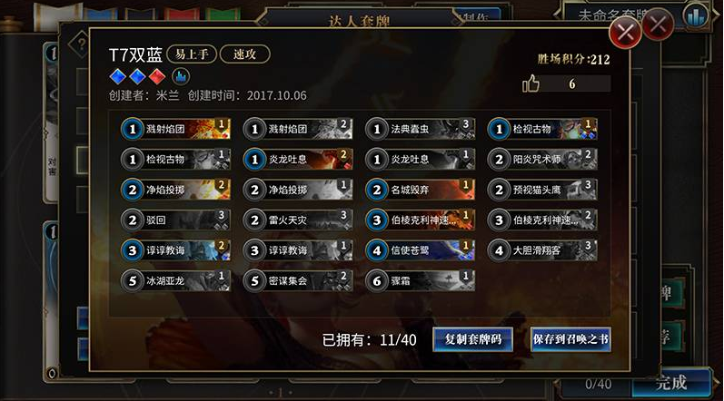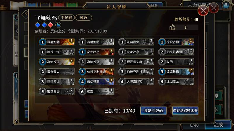 M= 如果要使用这副套牌,请先将套牌码复制到剪贴板,然后在“达人套牌”里点击“使用套牌码”进行粘贴。
