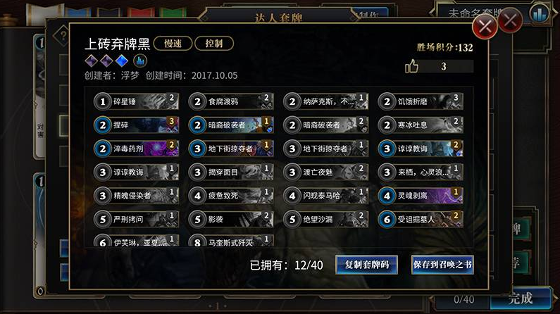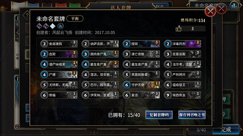 如果要使用这副套牌,请先将套牌码复制到剪贴板,然后在“达人套牌”里点击“使用套牌码”进行粘贴。