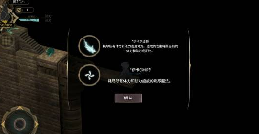 里边有个掉血考验,大概掉1000点,只要血+魔超过这个数就行,通过会得到大招。
