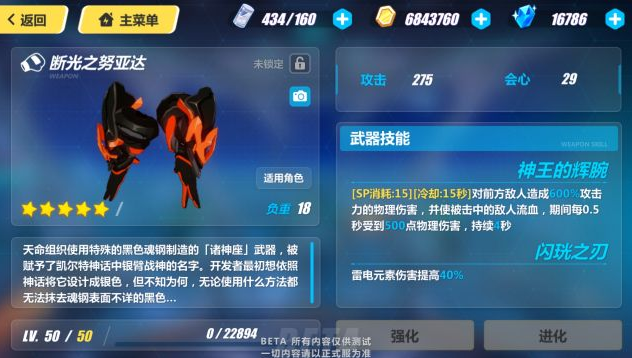 【神王的辉腕】:(SP消耗15,冷却15s)对前方敌人造成600%攻击力的物理伤害,并使被击中的敌人流血,期间每0.5s受到500点物理伤害,持续4s