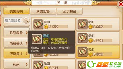 吸血:物理攻击时,吸收物理伤害*20的气血。吸血这个技能怎么评价呢?很多人认为PK的时候没有多大用处,任务的时候顶多省下一点红罗羹的钱。实际上并不是这样,如果你的宠物专挑对面的高防御单位打这个吸血效果的确不明显,但是如果你的宠物目的是点杀对面宠物,按照800左右的伤害来算,一回合也能回复160点的血。运气好的话可以在PK中多吸收一个龙宫的龙卷雨击的伤害。