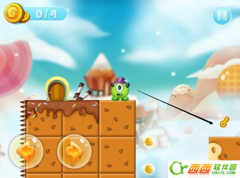 首先我们吃掉上图中的两个金币,然后跳到右边去,去吃掉钥匙。