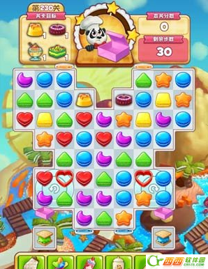 点评:这个关卡主要就是消除饼干模具的,其他都是随手的事情。如果实在不会弄这样的关卡可以借助道具,直接用手套把甜点移动到包装盒上方就行了。