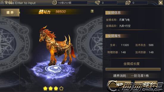 在坐骑界面中,用户可以通过喂养坐骑来提升坐骑的品阶。