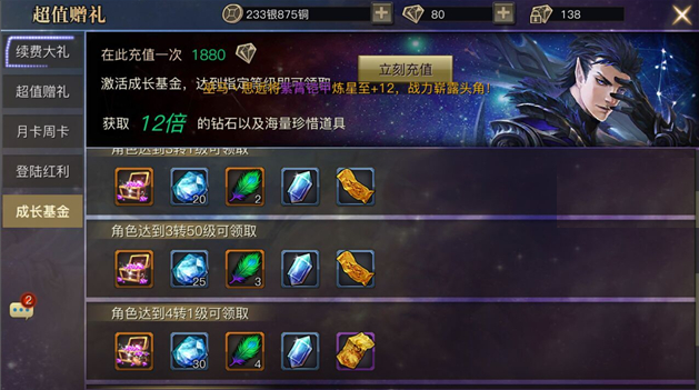 VIP等级充值比较划算自然是VIP1、VIP4、VIP7、VIP12性价比较高了,因为VIP4开启了长老会议厅经验有20%加成和竞技场额外次数增加,方便快速提升等级;VIP7额外增加了一次长老会议厅挑战次数。若打算长期玩可考虑利用好续费,充值周卡或月卡或登陆红利或成长基金,会划算很多;若只打算玩玩,就直接充值获得钻石抽抽抽好了。