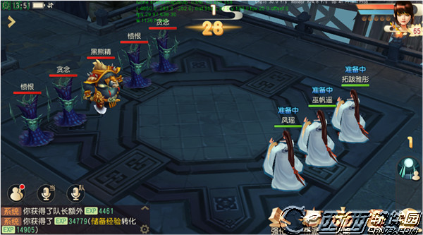 一段动画后进入第三关。主怪无敌,打败四个小怪即可获胜。要注意的是主怪会使用死亡的小怪的技能。小怪里面力劈华山伤害较高、震天之吼会抽蓝,比较厉害。