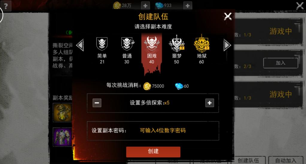 秘境中,次元裂缝、大教堂、暗影大教堂是可以通过消耗钻石、金币调高倍率和增加副本次数。