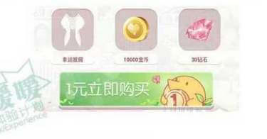 活动期间,花费一元即可获得包含“幸运披肩”“10000金币”“30钻石”的超值礼包,每人仅限一次