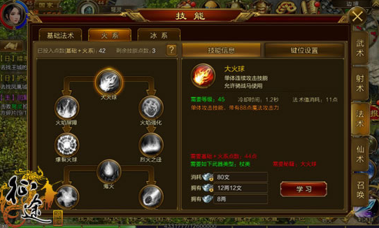 (1)大火球+5单体攻击技能,带有一定的法术攻击力
