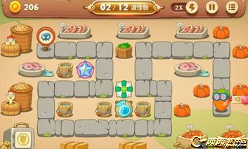 因为怪物不是很多,所以拿到的金币不多,为了不让怪物吃到萝卜,必须要有雷达的帮忙,上面的两个魔法球也是隐藏的炮台,前期可以迅速一点找出加强攻击力。