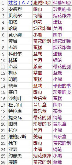 王与异界骑士中可以给骑士赠送各种礼物,如果是骑士最喜欢的那么,忠诚和仰慕最高可以得到50点的增加,那么王与异界骑士各骑士要什么礼物增加的忠诚和仰慕最高呢?下面就让西西来为大家分享王与异界骑士送礼攻略,希望大家喜欢。