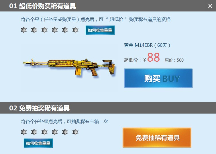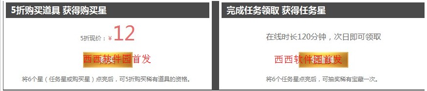 将各个星(任务星或购买星)点亮后,可“ 超低价 ”购买稀有道具的资格
