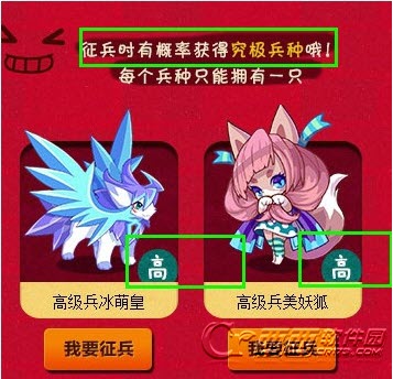 3、前往征兵营征兵吧!用你的将军令和萌王征兵,兵种有初中高三个等级,不同等级的兵种需要花费的将军令数量不同。征兵时有一定概率征得究极兵种“萌王分身”哦!