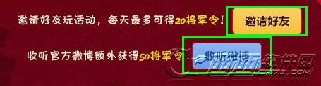 还可以通过收听微博和邀请好友获得将军令!每个账号只能收听一次微博哦!每天通过邀请好友最多可以获得20将军令!