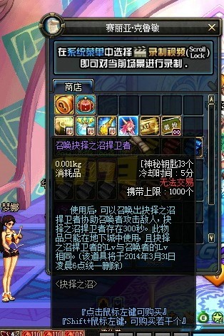 目前体验服NPC赛利亚处可以看到2014春节将开抉择之沼活动的各类奖励: