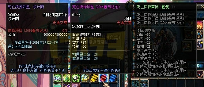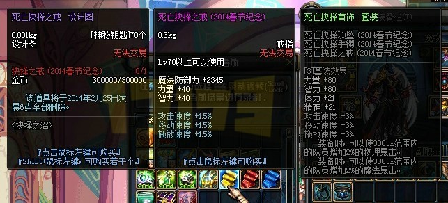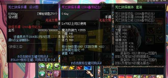 2014版春节死亡抉择首饰(属性强化为图纸显示属性,经玩家测试实际最上级的属性强化为11