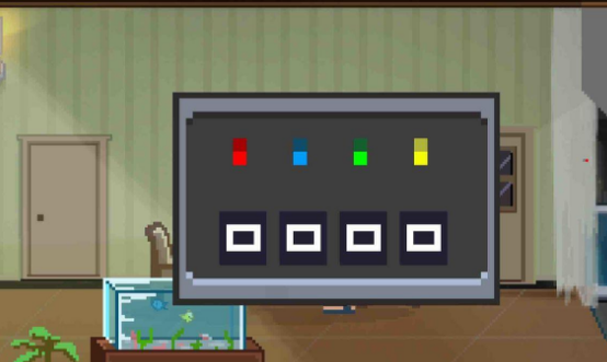 进入左侧带有电脑的房间,记住黄色小虫的运动轨迹,此时再次回到客厅,点击餐桌上密码箱将与颜色相对应小虫的运动轨迹,选择的密码,即可获得白色方块。