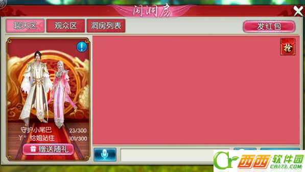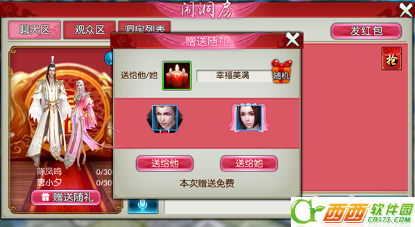 进入聊天室后,可以免费为新婚夫妇赠送1份礼物以示恭贺