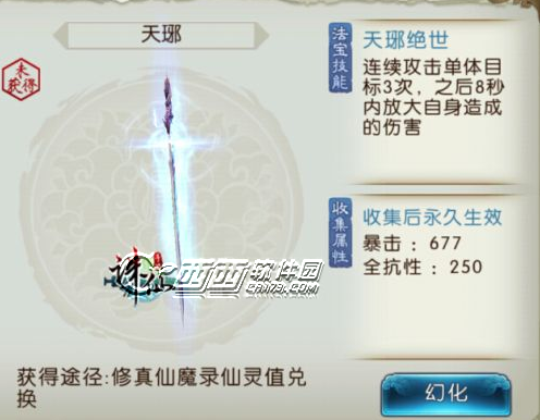 其次比较推荐的是天琊法宝,该法宝属性如下图所示: