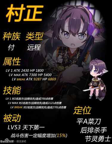同时,虽然村正的技能不算强,但是依旧有一定的意义。当你的手上拥有2名或以上对后排/指定ATK最高/A0E的卡片时,村正就是一个很好的补刀手。当你的手上只有1名上述技能的卡片时,村正也可以配合输出秒后排。