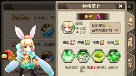 杨戬:远程高伤害神将,进阶后开启天眼,增加杀伤力,吸血,生命恢复等。