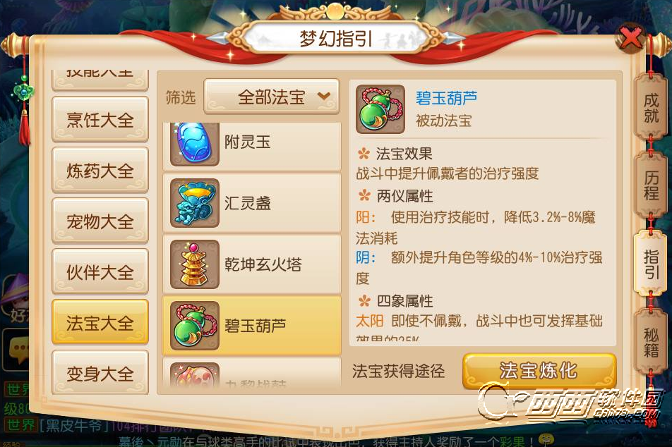 这个法宝可以增加佩戴者的治疗强度,化生寺作为治疗辅助职业,这个法宝是必带的。(成吨的奶量有没有)