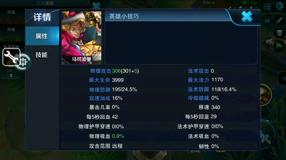 马可波罗具体技能这里不多说饿了,只说技巧。马可波罗一技能和三技能都有暴击、法术效果,攻速提高,一技能和三技能可以有更多的子弹伤害会更高。一技能暴击足够,可瞬间带走脆皮一半血。