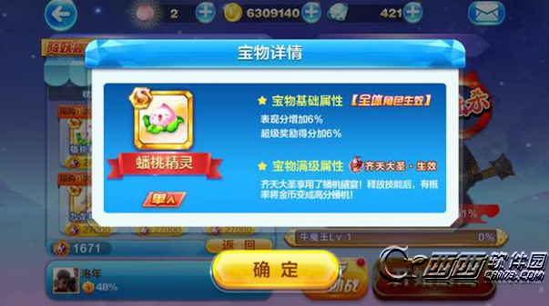 满级蟠桃精灵对齐天大圣生效,齐天大圣释放技能有概率把金币变成高分蟠桃