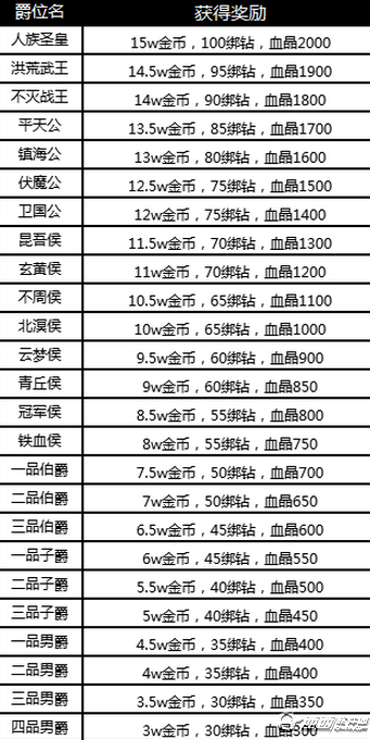 l 竞技场排行越靠前,获得的金钻奖励越高;