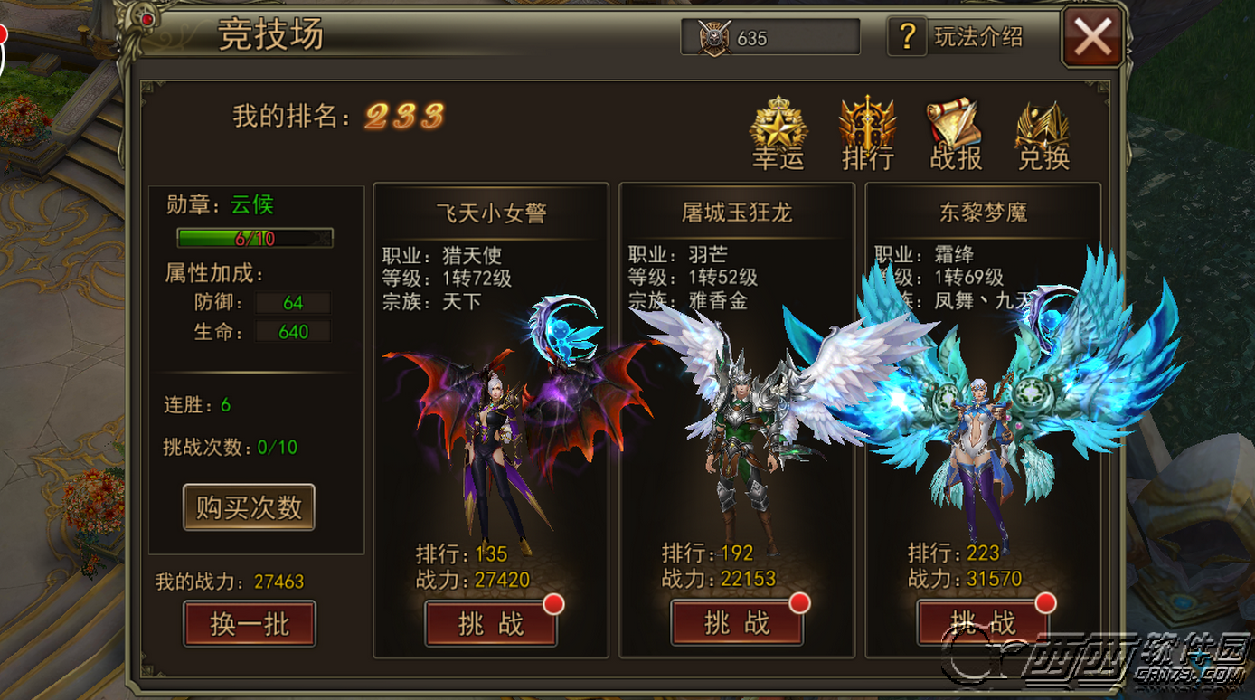 l 竞技场中,玩家可以看到排行在自己前面的玩家信息并且挑战他们。挑战成功则顶替该玩家的排行。挑战失败则保留当前排行;
