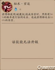 源博雅使用【破魔矢】造成伤害时,黑豹有30%的概率协同作战,造成源博雅攻击100%的伤害。伤害技能,分身也能触发,而且技能本身能触发姑获鸟助战。
