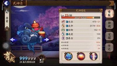 rap手式神,打架全靠嘴。虽然是个N卡,但技能还是很友好的,特别对于狗粮队来说,二技能被动,受攻击加鬼火,类似惠比寿觉醒被动(还没试过和椒图配合是否有效),良心被动。三技能满级20暴击,一直存在,没有说持续时间,测试也是一直存在,除了4费有点伤,对暴击主宠来说还是棒。