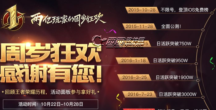 10月22日~10月28日,每日分享游戏内的周岁回忆主题图,可以获得蛋糕碎片*1+钻石*50的丰厚奖励!活动期间内,最高可获得350钻石奖励!收集蛋糕碎片可兑换永久英雄或皮肤!