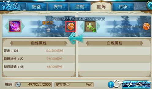 2.如果不想培养2个法宝或只能培养得起1个,只有攻防血可以选择(攻防暴伤也可以,但更稀有),那么在找到攻防血之前,可以用我上面的方法合并,身上暂时用的法宝可以升级,但不要血炼,因为传承只能传一种,等有攻防血后,就可以将经验和合并的法宝吞掉,做到不浪费。