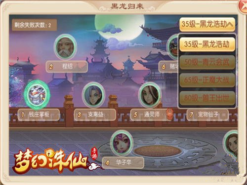 在黑龙浩劫中有35级黑龙浩劫,50级青云会武,65级正魔大战,80级兽王出世四个不同等级的副本。每个副本又有20个关卡,每个关卡的第10和第20是BOSS关卡,每个关卡的小怪数量也不同。