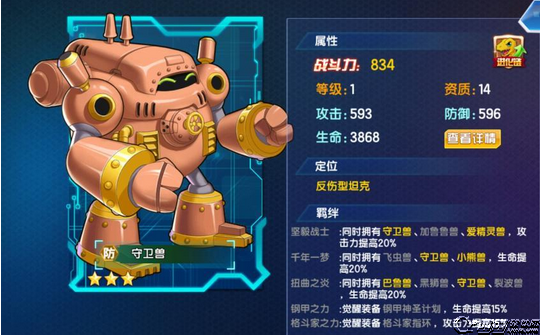 分析:反伤型坦克,虽然是3星数码兽,可却是在中后期也依然给力的肉盾型数码兽,14资质肉盾中的No.1