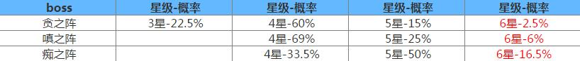 三个boss阵对应不同星级御魂概率: