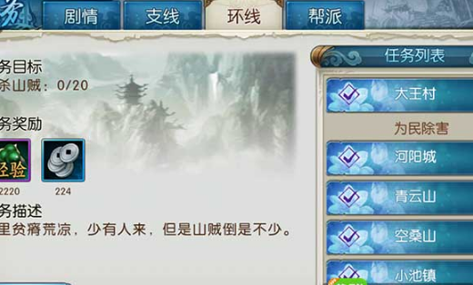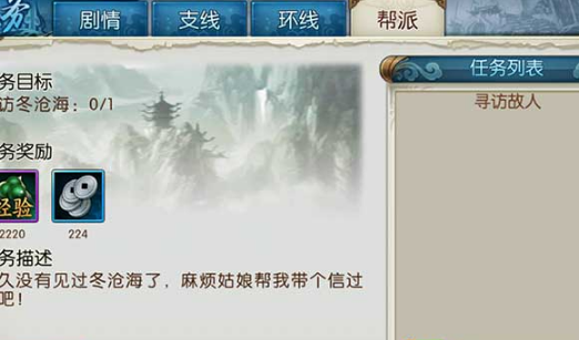 (1)进入任务界面后,点击“帮派”按钮即可进入帮派任务界面
