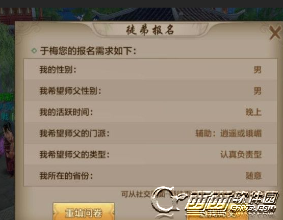 1.玩家等级达到50级以上,就可以申请成为师父,填写调查问卷,回答6个问题,就可以发布收徒信息。