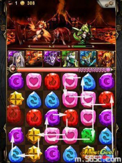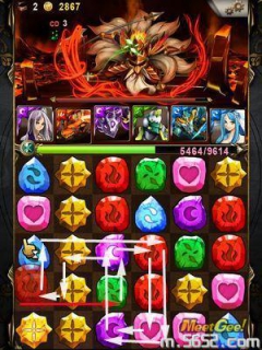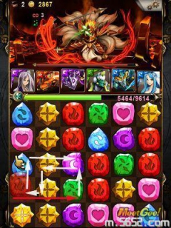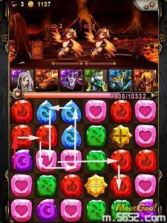 三封之后的玩家一定知道怪物的血量大幅提升,全体攻击可有可无,冲COMBO 的高伤害一只一只打才安全,图九、图十的水属珠子较多,而且还有靠近的L 型排列,随随便便就能组出五颗的全体攻击,但这里注重的是COMBO 数,尽可能避开五连珠。