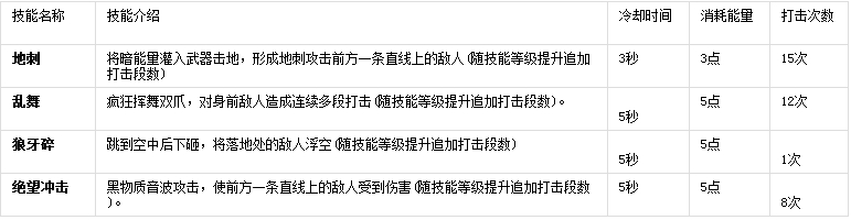 近身到敌人附近直接乱舞之后使用地刺将敌人打浮空,在接让狼牙碎继续在浮空一次,接乱舞让敌人固定在空中。最后来个绝望冲击!