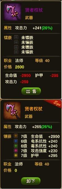 不同品阶的装备所能镶嵌的宝石孔槽数量也不同