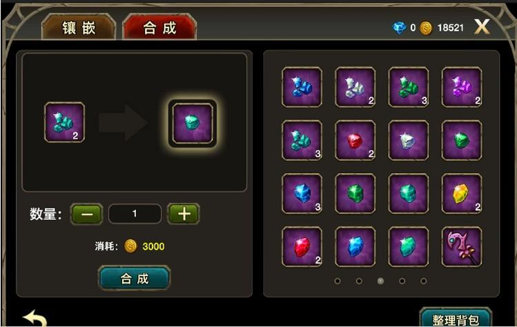 玩家可以将两颗相同的镶嵌宝石合成提升等级,需要支付少量金币