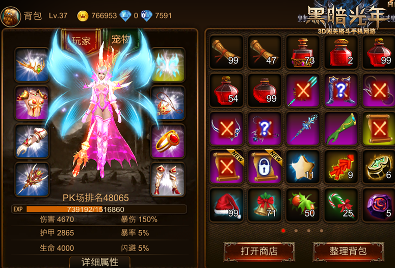 此时,冲级奖励从10级开始已经可以积攒到240万金币,价值180元的钻石和70级的宝石箱多大40个的强化石。所以,《黑暗光年》在玩家升级最困难的时刻送了大量的奖励,也可以不用花太多的钱就能打造出一身高等级的装备。