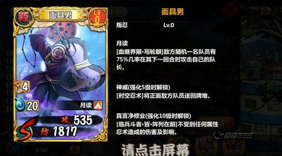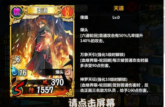 我想了想如果你不好控他,君麻吕这样有魔人技能的顶住他的攻击其实是很方便的,魔人加吸血刷大蛇丸不二选择。当然有些人品比较好的抽到了迪达拉或者直接弄了张影之我爱罗那这关就很简单了。