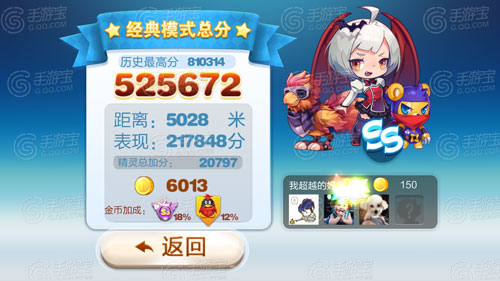 测试的搭配选择了现在最流行的魔女娜娜+暴力鸟叔的组合,在经过多次的经典模式5000米对比测试后得出结论,蒙面小强和伊咪兔刷分能力很相近,蒙面小强获得52W分,而伊咪兔获得55W分。